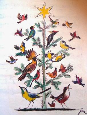 Otóż tego wieczora spotkaliśmy się z przyjaciółmi śpiewać kolędy. Bardzo przyjemny wieczór, bo z przyjaciółmi to są przyjemne wieczory, mimo że temperatura spadała coraz bardziej, z minus sześciu do minus dziesięciu, a potem – jak już wracaliśmy – to do minus trzynastu. Więc śpiewaliśmy te kolędy i jedna trafiła się, zresztą na specjalne zamówienie K., dość dziwna. Jej druga zwrotka brzmiała tak: Słowik zaczyna dyszkantem, szczygieł mu wtóruje altem; szpak tenorem krzyknie czasem, a gołąbek gruchnie basem.