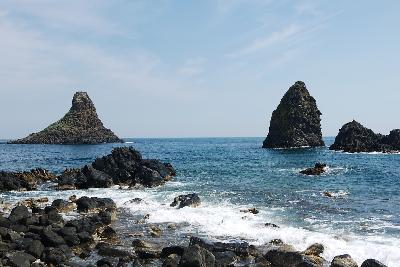 „Czerwony księżyc” jest o rzut kamieniem od skał ciskanych przez Cyklopa. Rybacy mówią tu w języku jeszcze bardziej obcym, mają ogorzałą skórę i akurat rozmawiają o Dziecku. Pijemy południową kawę w białym słońcu, co prześwietla zdjęcia.