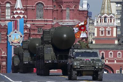 (Głowice nuklearne na defiladzie z okazji Dnia Zwycięstwa w Moskwie, źródło: gazetadita.al)