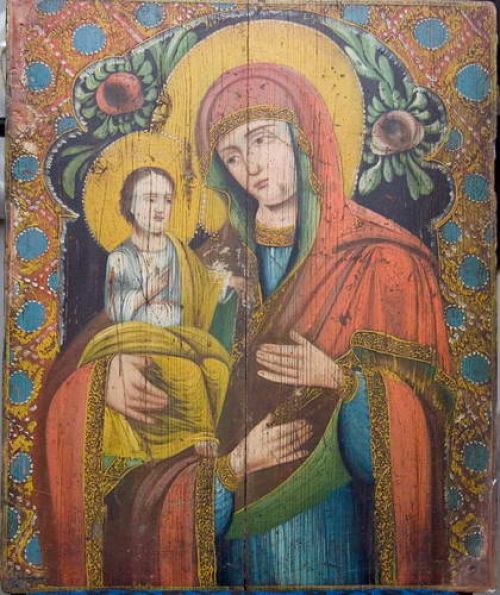 Była tam Matka Boska z trzema rękami. Jest półnaga. Z pępka wyrasta jej krzepka, zgrabna ręka. Dwie pozostałe są rozłożone gestem błogosławieństwa. Trzy ręce mają symbolizować świętą Trójcę. Inny pobożny obraz Matki Bożej przedstawiał ją z otwartym podbrzuszem; zamiast wnętrzności wypływają z niego chmury; pośród nich Chrystus-dziecko tańczy i trzyma w dłoni skrzypce (s. 36)