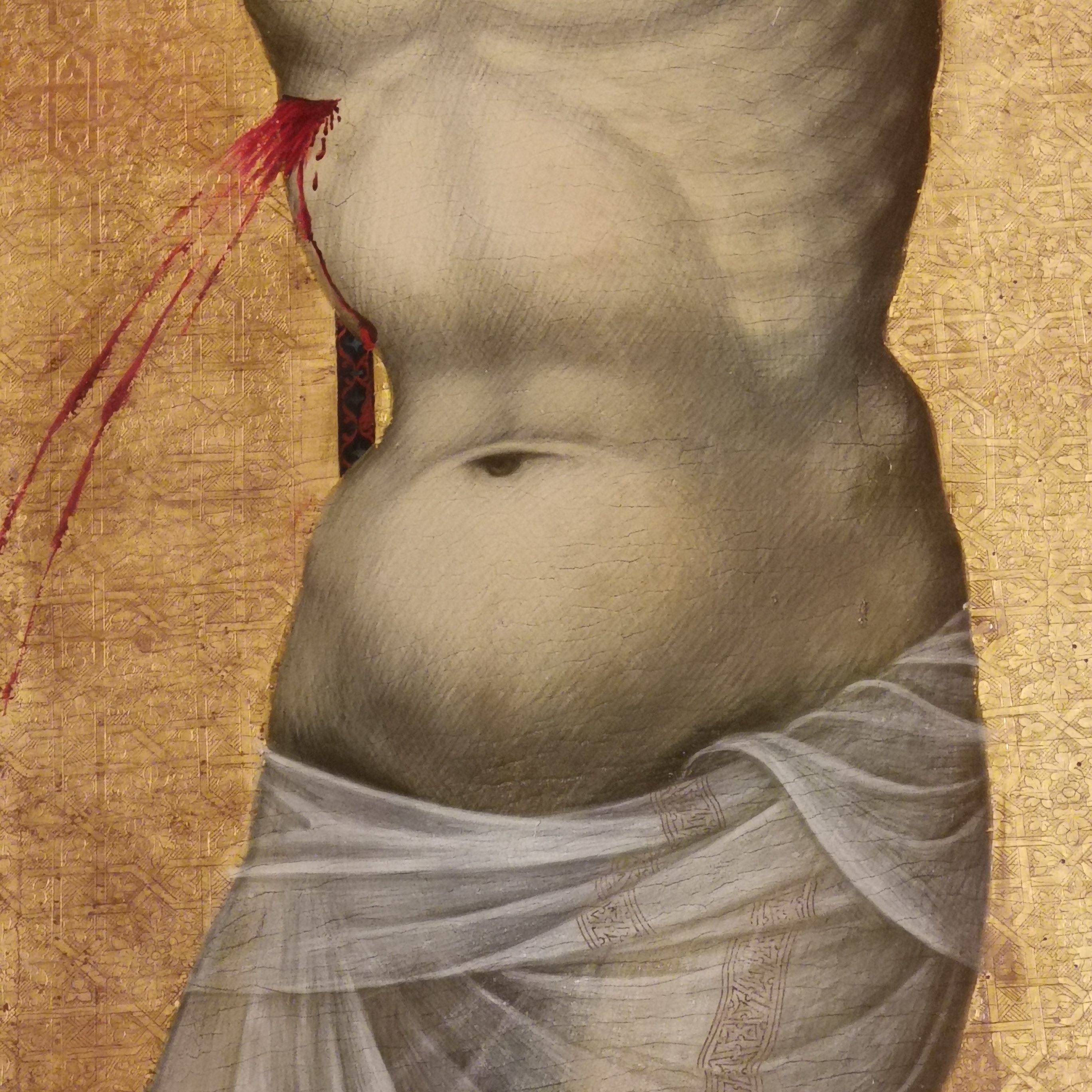 Oto po raz pierwszy umiera święty Sebastian: wzrok widza nie sięga nawet jego ciała, podziwia natomiast kolorowe, obcisłe pantalony jego oprawców jak z najnowszej kolekcji (uwaga o Benettonie nie była więc całkiem pozbawiona związku). Oto po raz drugi umiera święty Sebastian (do złudzenia przypomina piękną młodą dziewczynę): bohaterem obrazu jest postać łucznika, który zadaje męczeństwo. Oto Zeus przebrany w łabędzia z furią gwałci Ledę. Aż patrząc, słyszysz furkot skrzydeł. Aniołowie w kręgach układają się w chóry.