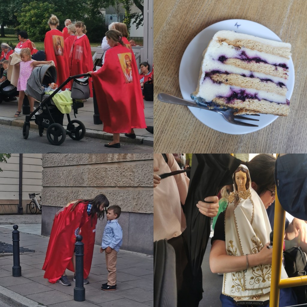 Kiedy wyszedłem, rozbierali się z czerwonych płaszczy. Popołudnie robiło się ciepłe. Do dziewiątki wsiadła Matka Boska a jej opiekunka opatuliła ją płaszczem.