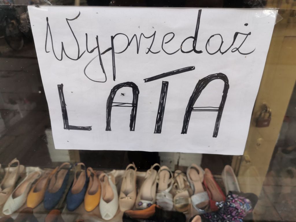 mam może omamy: kobieta przede mną pachnie biszkoptowymi perfumami. jest starszą panią w wyplowiałym palcie. światło jest łagodne a powietrze rześkie. szewc na niepodległości ogłasza – ponad pantoflami – wyprzedaż lata.