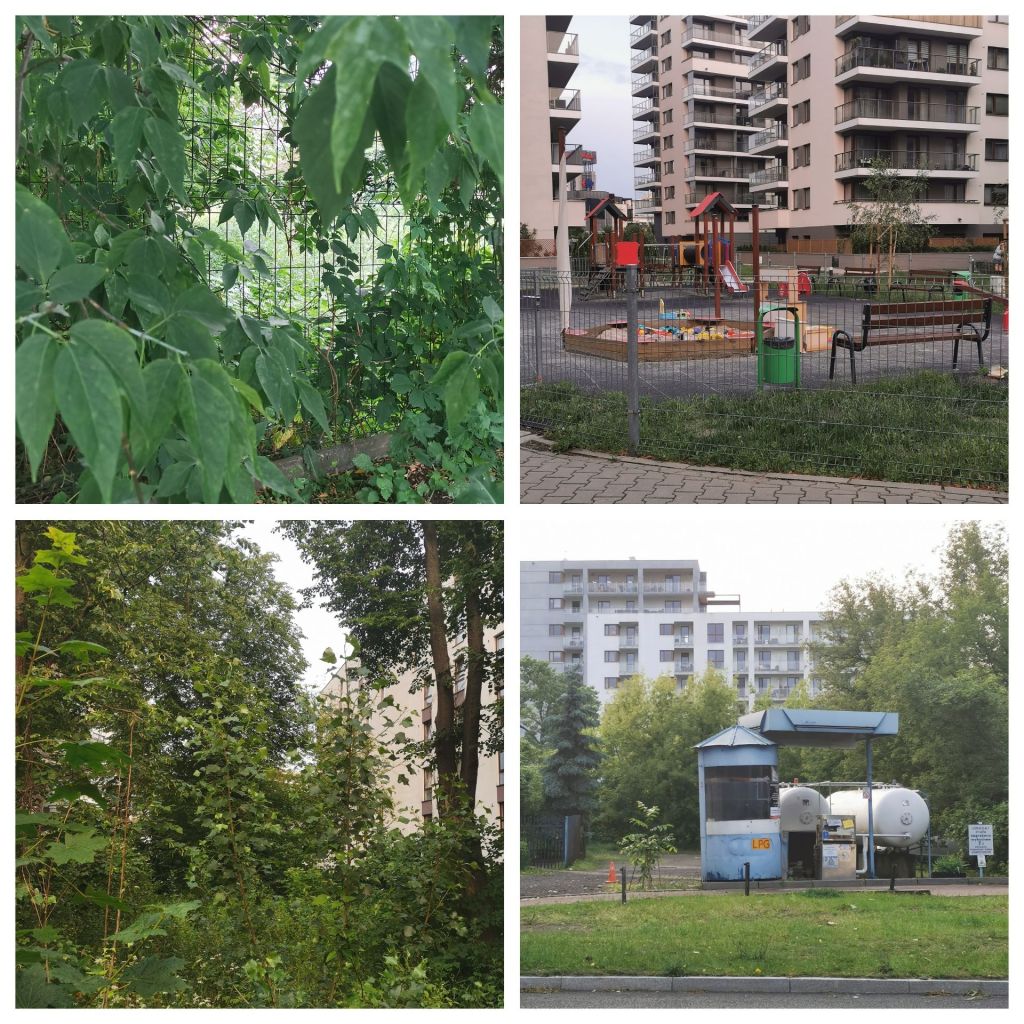 (Wybieram się wieczorem z Żoliborza Egzaltowanego. Jest nieczerwcowo chłodno. Niemiejsce trudno dostrzec, nawet ogrodzenie zarasta zielenią. Śladem linii są drzewa samosiejki. Obok można przyjść na paznokcie.