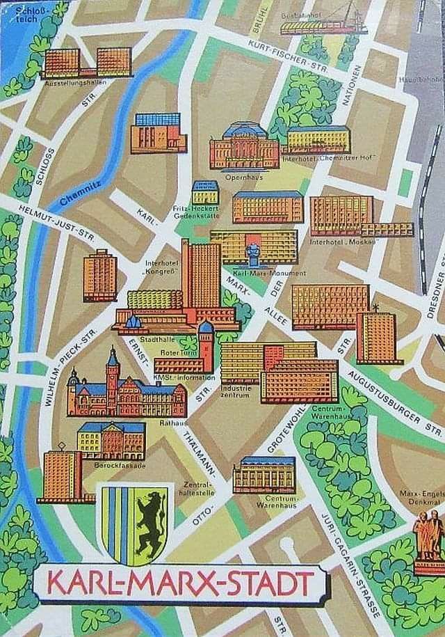 Nie wiem, kto wpadł na pomysł organizacji wczasów w Karl-Marx-Stadt, w każdym razie moja pierwsza zagranica mieściła się na osiedlu studenckim, przypominającym nieco ZOR Zachód, nieopodal miejskiego cmentarza z potężnym budynkiem krematorium. Ulica Turyńska, odnajduję ją bez problemu na openstreet. Było lato, więc akademiki zamieszkiwali – oprócz wczasowiczów – głównie mieszkańcy egzotycznych demoludów (Katja Hoyer wskazałaby zapewne Wietnam i Mozambik).
