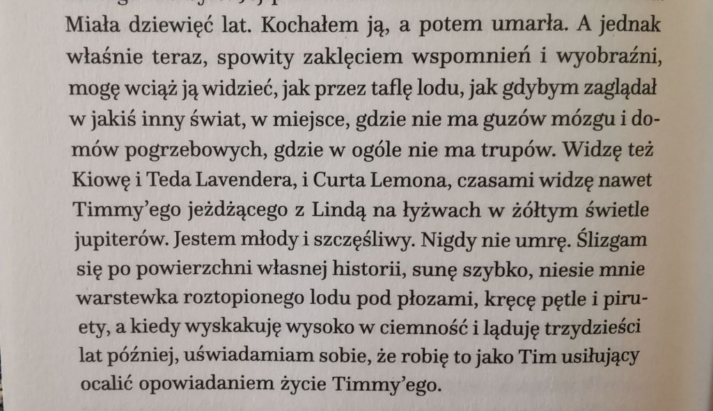 Tim O’Brien pisze przeciw śmierci, a wojna jest tylko jedną z jej personifikacji. To literatura ratunkowa, ocalająca, pozwalająca uratować, wyciągnąć ze szlamu, zdjąć z drzewa, złożyć w całość, zabrać z domu pogrzebowego.