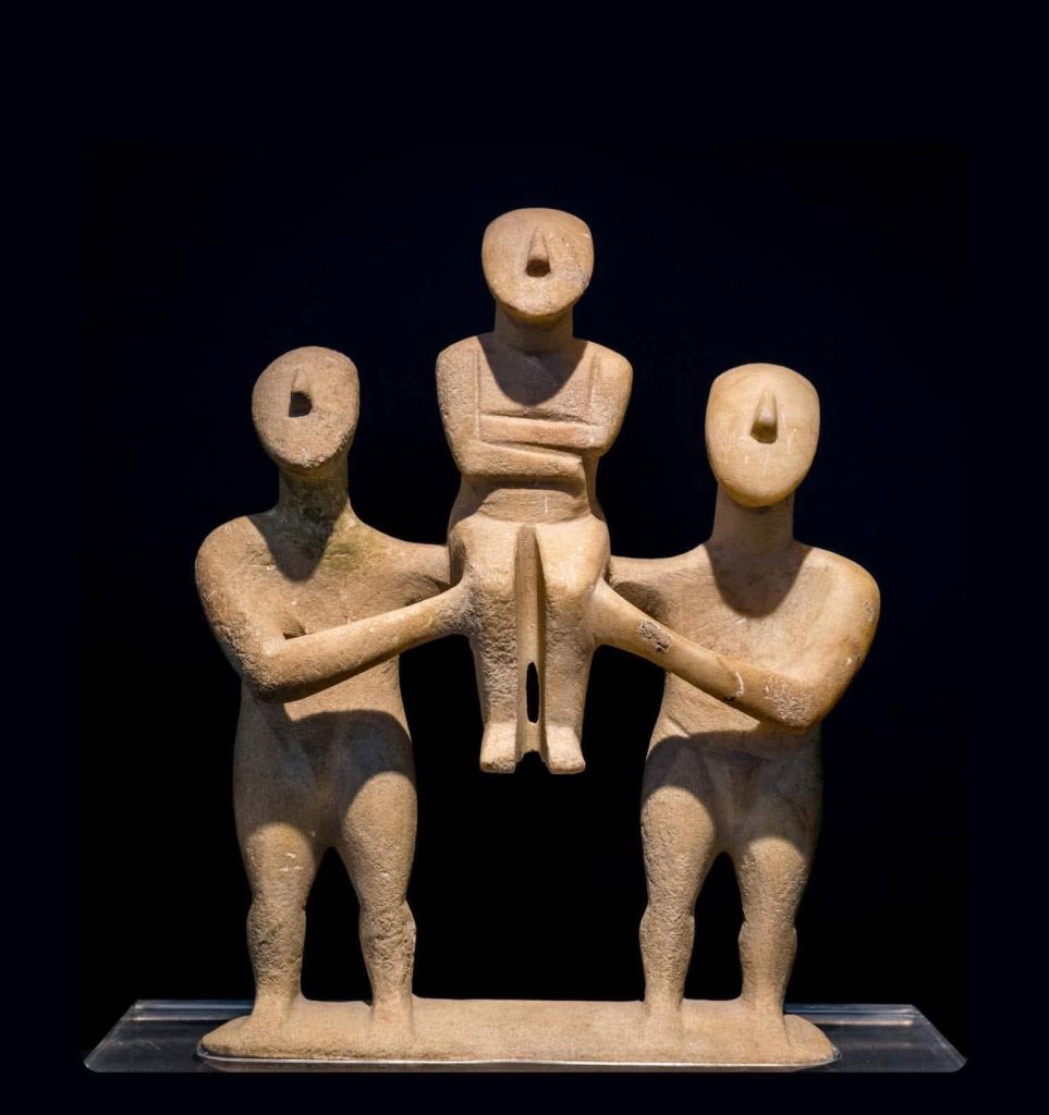 Trzy figurki z okresu kultury Keros-Syros, Cyklady, ok. 2700-2400 p.n.e., Badeńskie Muzeum Krajowe, Karlsruhe, źródło: facebook.com
