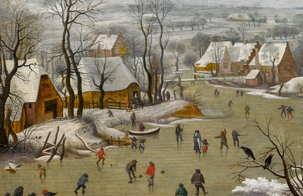 Piotr Brueghel Młodszy, Krajobraz zimowy z pułapką na ptaki (fragm.), między 1601 a 1626, kol. pryw., źródło: https://www.sothebys.com/en/articles/the-eternal-allure-of-brueghels-seasons