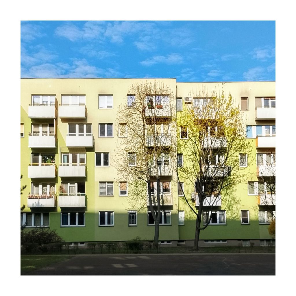 Po tych tu alejkach chodziliśmy do przedszkola. Dziecko na czerwonej hulajnodze. Potem przyszła zaraza a później przeszła. Kwitło, przekwitło. Dzieci o poranku idą do szkoły.